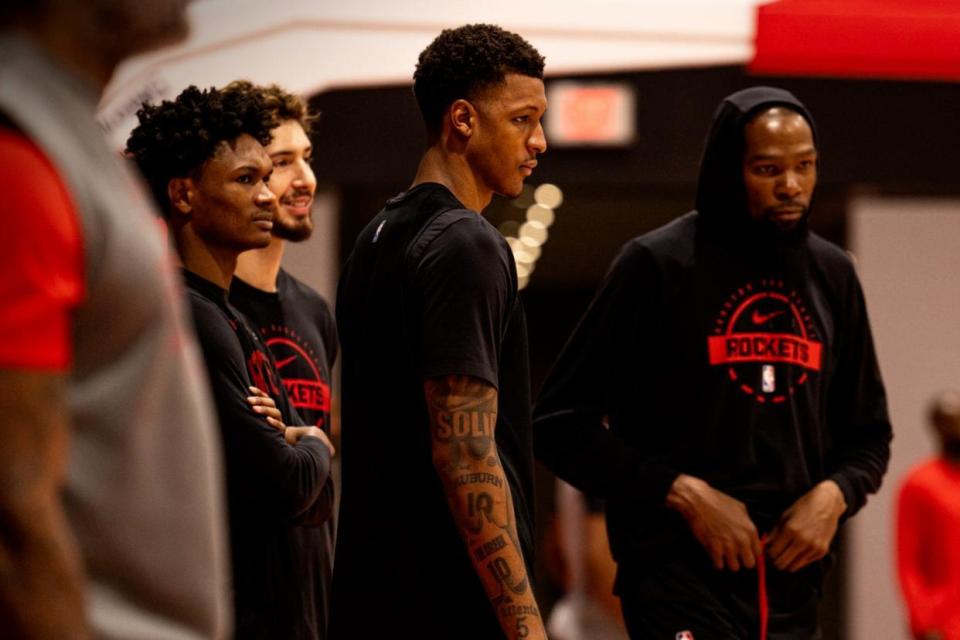 确实如此,这只是新赛季开始前段,虽然两连败,确实也没必要沮丧。如果要说输球的两场,谁是队内发挥最好的球员,毫无疑问,基本盘还是杜兰特。加入新球队的前两场比赛,杜兰特场均42分钟的上场时间,可以得到30分6篮板1.5抢断,命中率52.9%,三分42.9%,罚球87.5%,效率很高。这其实也是火箭队想让杜兰特做到的事情,出色的经验,强大的硬解能力。但更让人意外的是,杜兰特的防守能力。有一项数据表示,杜兰特是新赛季开始以来,火箭队内单防能力最强的球员。在防守对位人出手超过20次的球员里,杜兰特合计让对手投出了21投3中的命中率,暂居联盟第一。